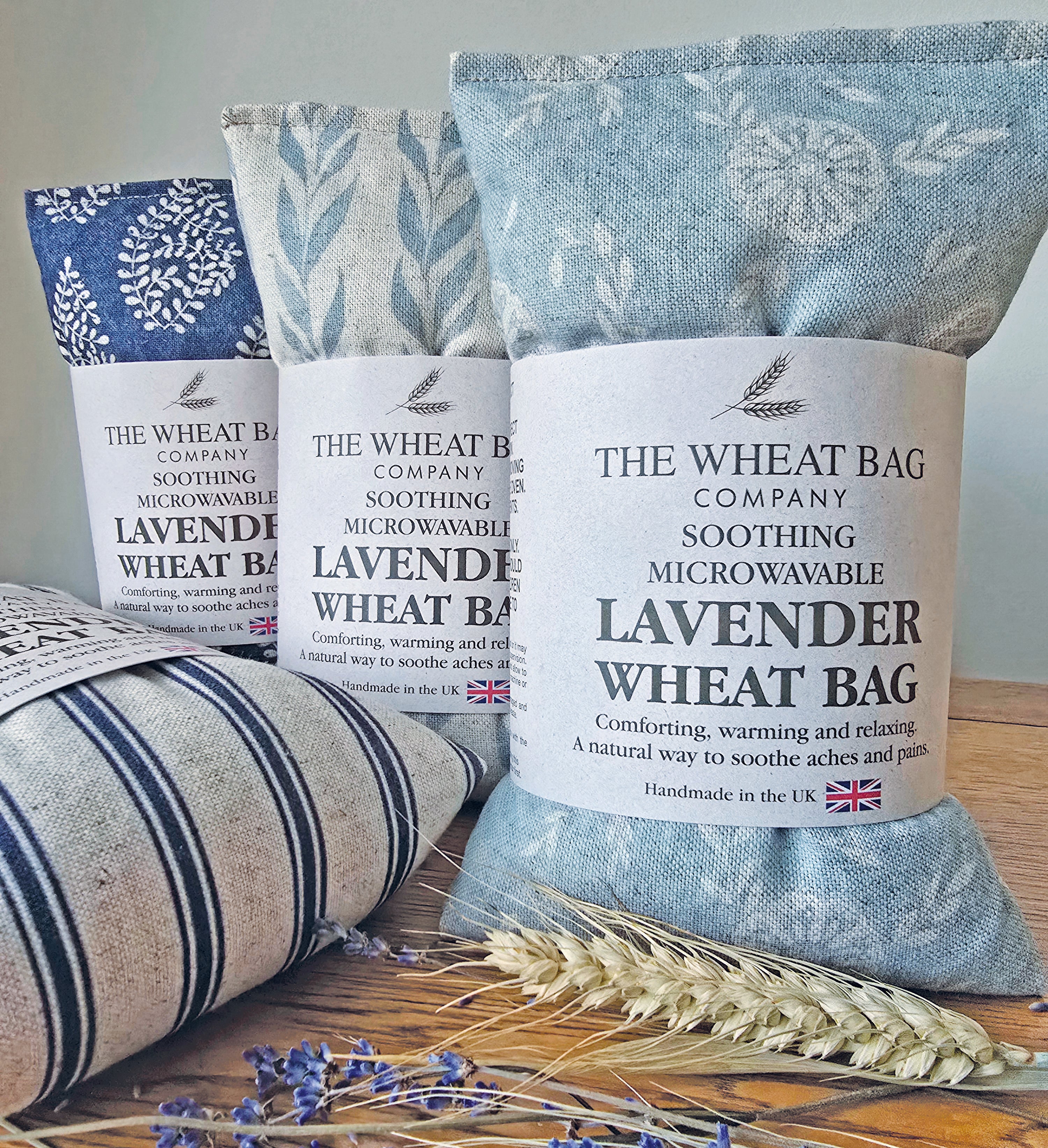 Made from 20% Linen and 80% Cotton our Microwavable Wheat Bags are filled with English Wheat & optional English Lavender Buds.