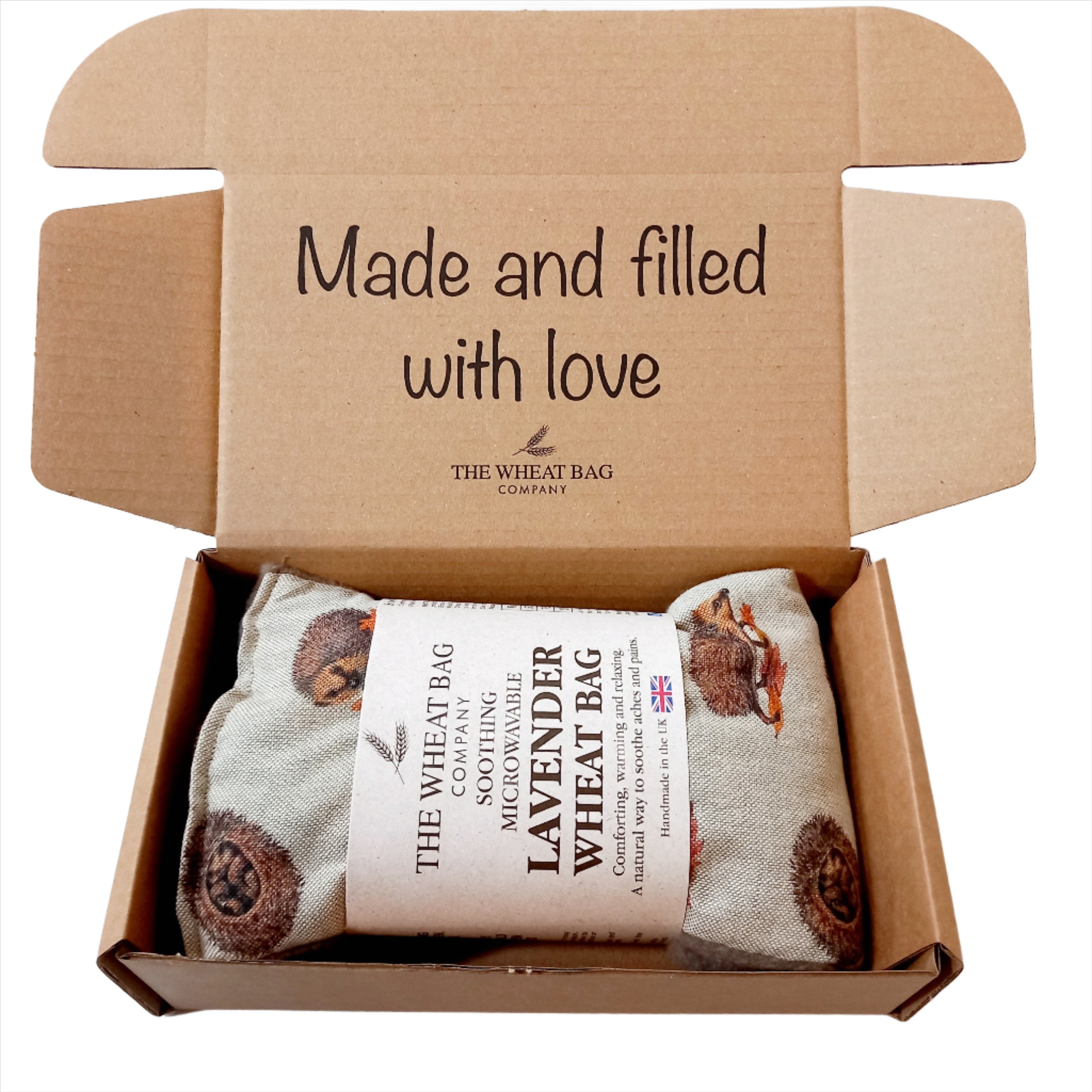 Filled with cleaned English wheat, they are available in either unscented or with added English lavender buds.